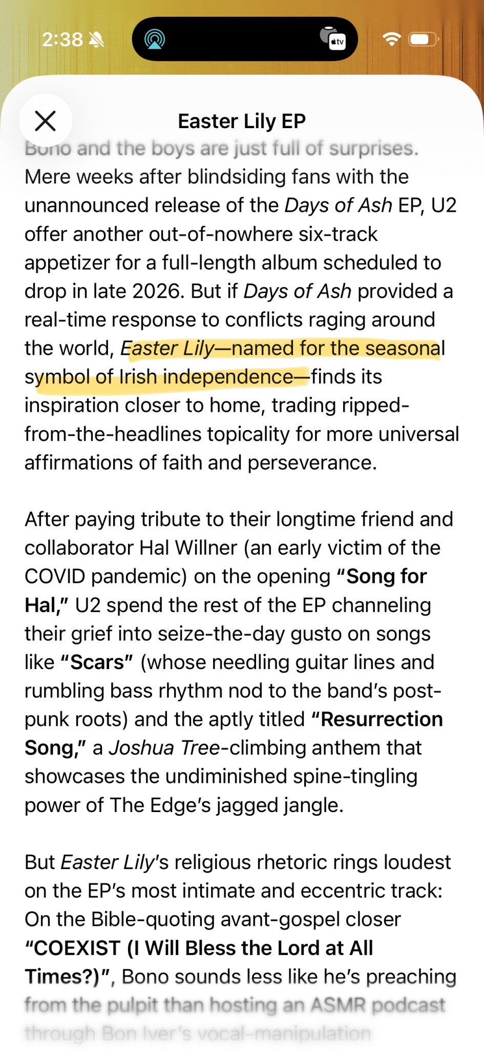 Today, on Good Friday, they drop “Easter Lily.” With songs titles like “Scars,” “Resurrection Song,” and “Easter Parade,” you would think it obvious that this drop was timed to coincide with the Christian holy days of Good Friday, Holy Saturday, and (ahem) Easter. You wouldn’t know it by reading the Apple Music blurb that comes with the album.